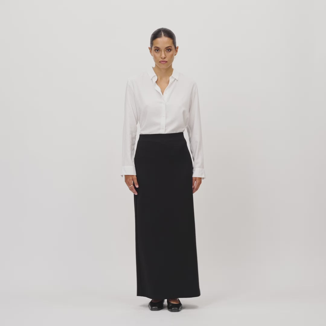 This tailor-inspired maxi skirt offers a sophisticated look without sacrificing comfort and features dart details, an invisible waistband design and back slit. It is crafted from a luxurious double-knit ponte fabric that is both heavy and soft, with added stretch for improved comfort.