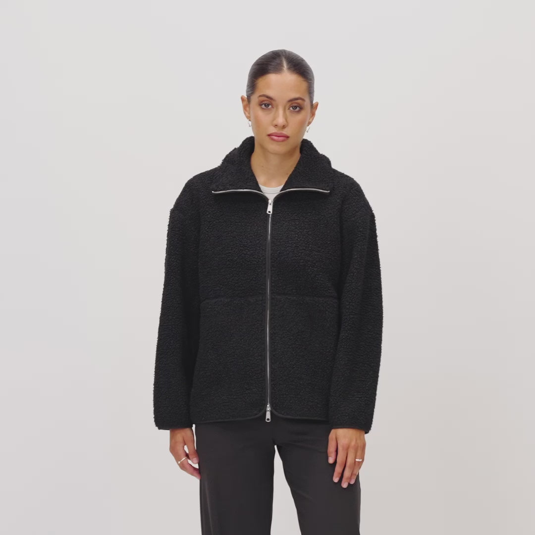 Experience the luxury of comfort with Ninepine's versatile fleece jacket that combines elegance with practicality. This cold weather staple has thoughtful details such as hidden pockets, 2-way zipper and soft fleeced lining that makes it a perfect addition to your capsule wardrobe. Dress up or down, the relaxed fit and dropped shoulder design provide a comfortable, yet sophisticated look.