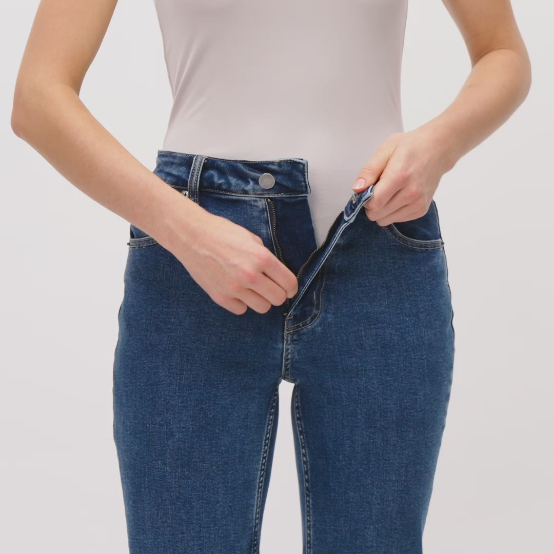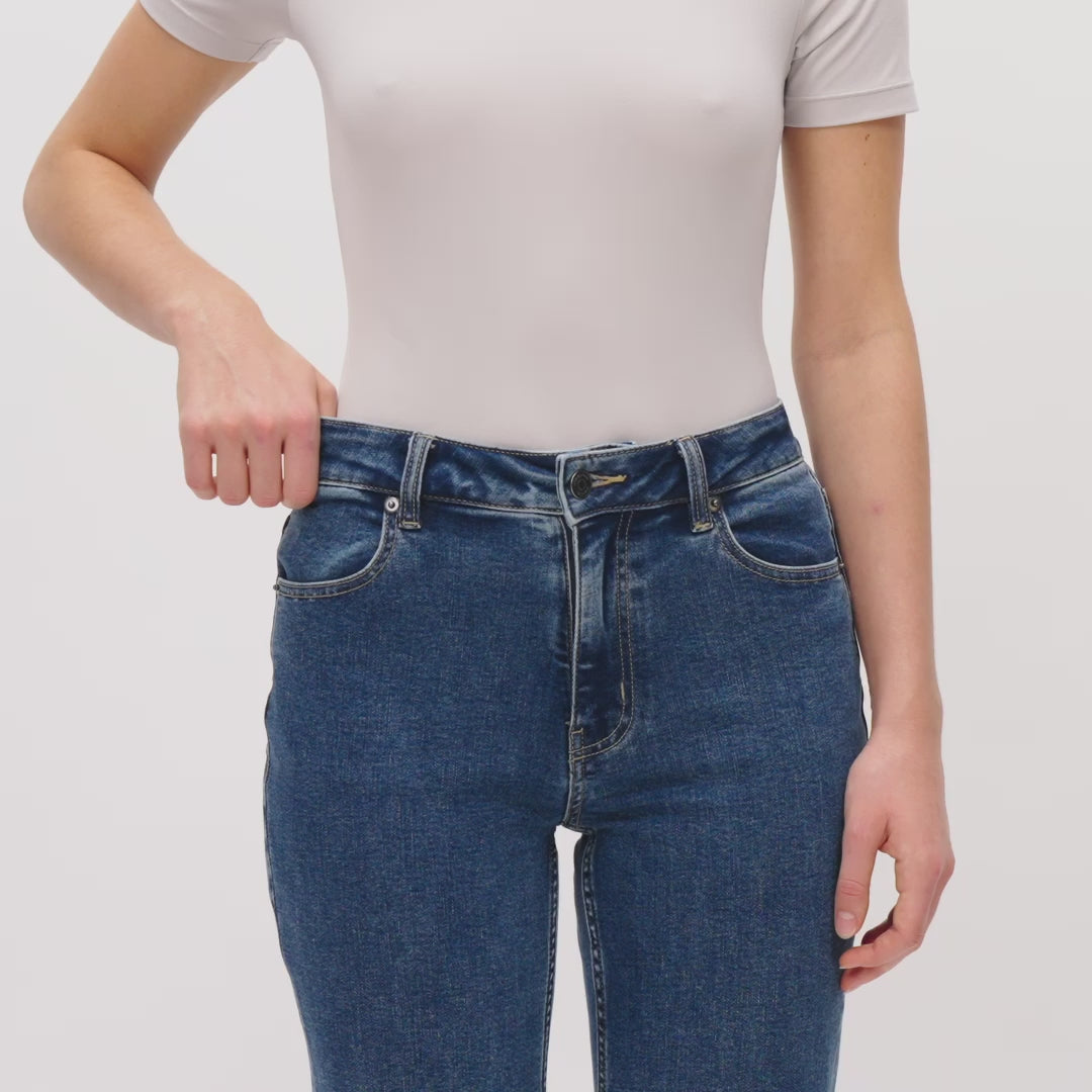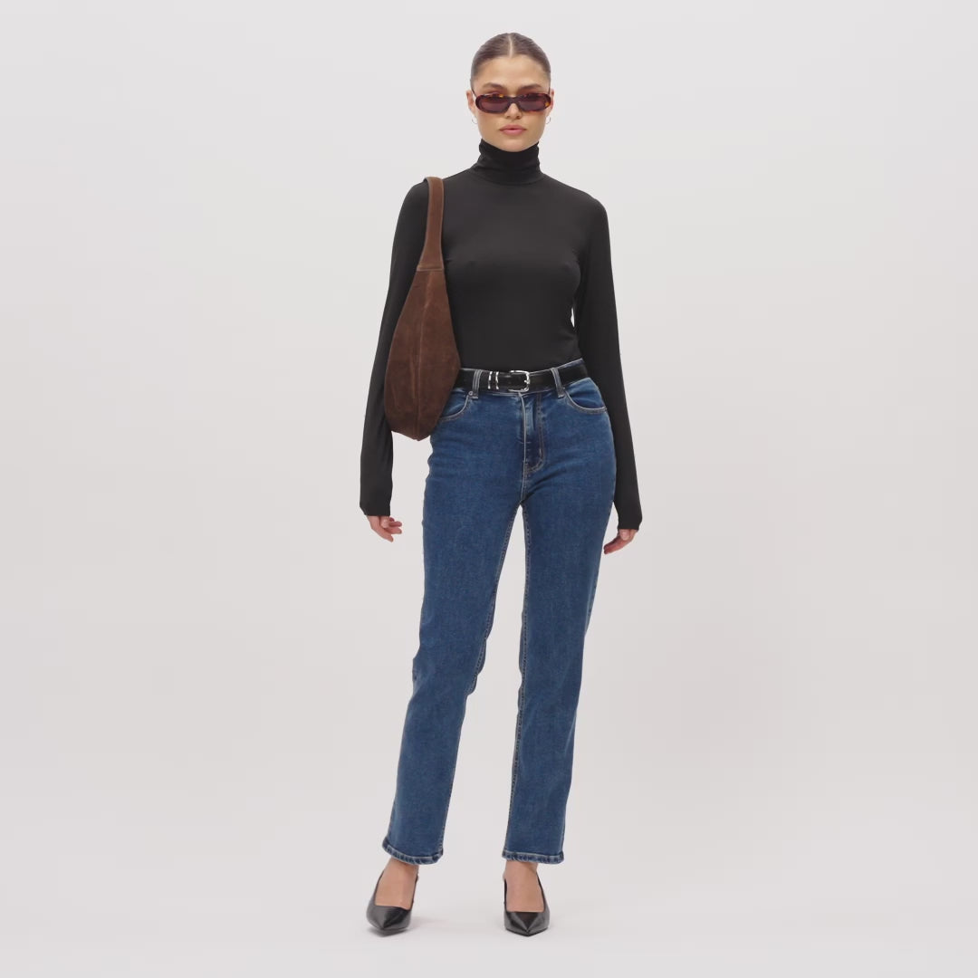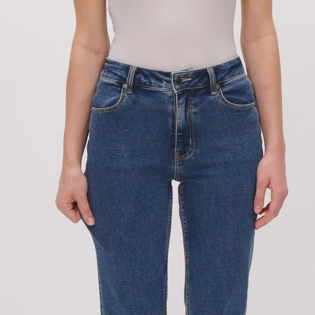 Experience the classic look of denim with the comfort of incredible stretch. Our high-waisted, straight-leg slim jeans are crafted from a proprietary denim blend that’s both very stretchy and thick, providing the feel of traditional denim with added flexibility. Versatile and perfect for everyday wear, these jeans are a must-have in your wardrobe.
